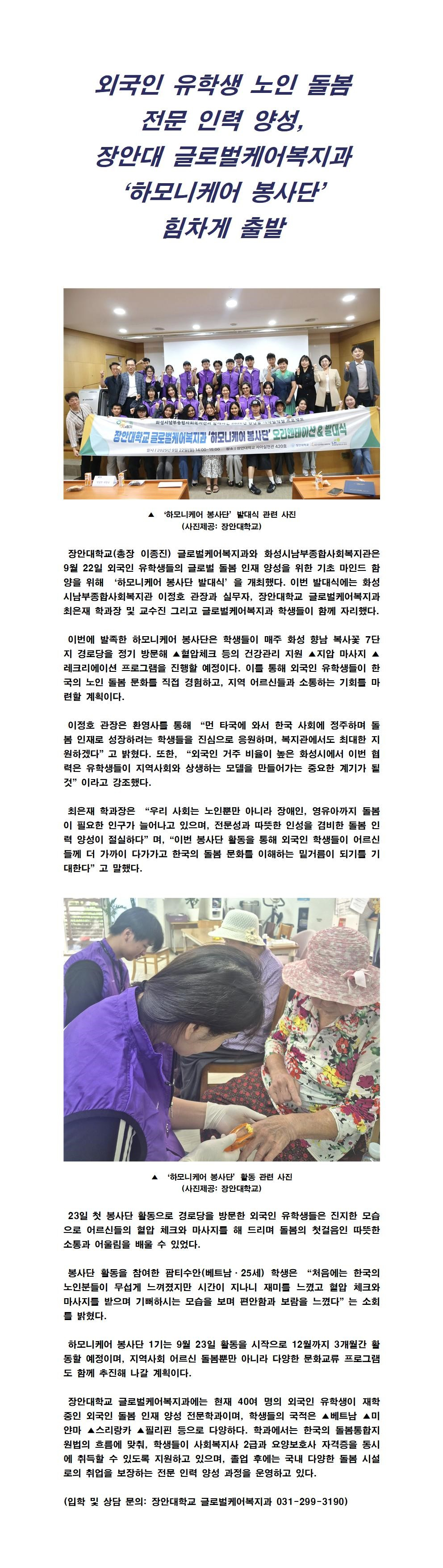 [장안대학교] 외국인 유학생 노인 돌봄 전문 인력 양성, 글로벌케어복지과 ‘하모니케어 봉사단’ 힘차게 출발