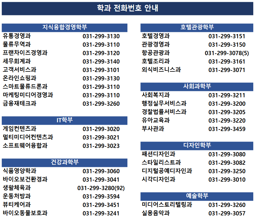 - 휴ㆍ복학관련: 교무팀 (031) 299-3330