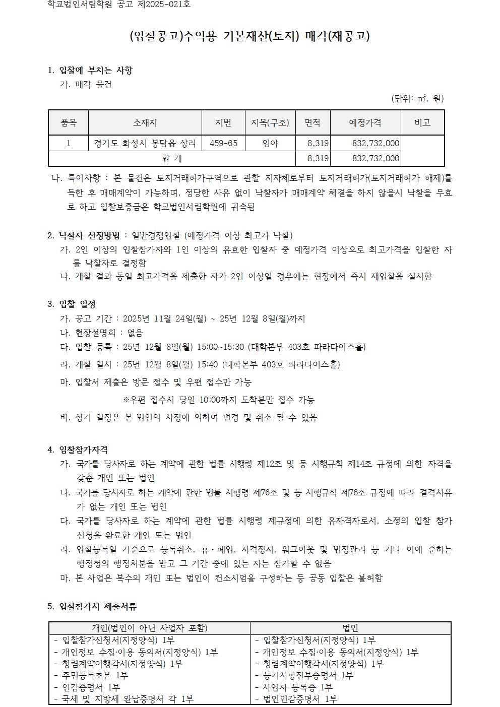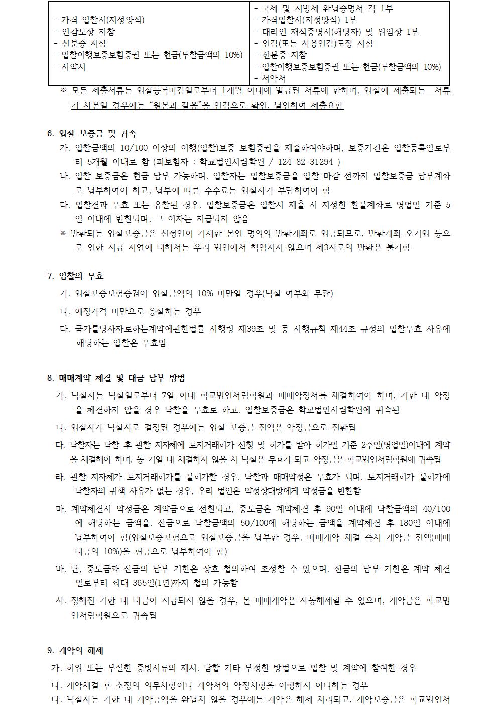(입찰공고) 수익용 기본재산(토지) 매각 공고(재공고) (1필지)